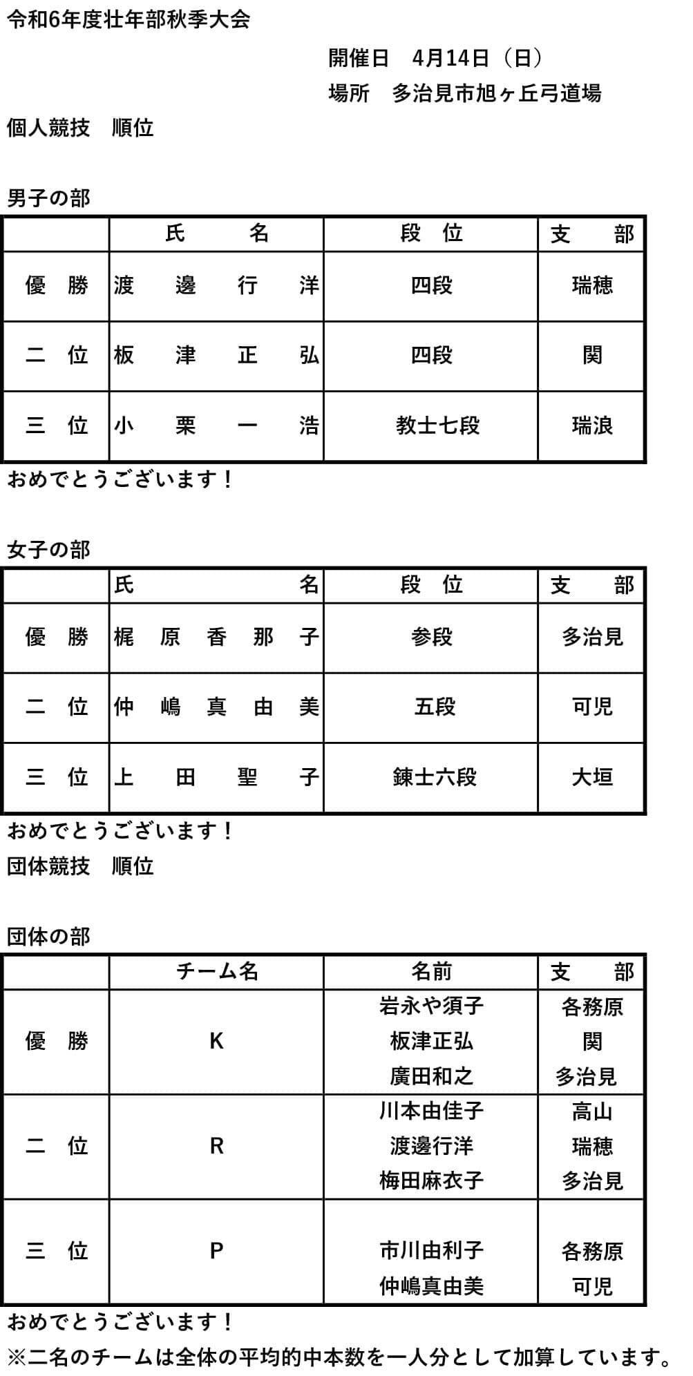 ねんりん部春季弓道大会/瑞浪市民弓道場・通信
