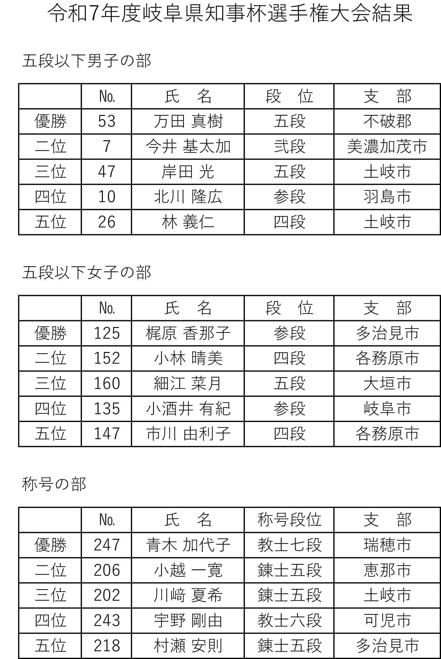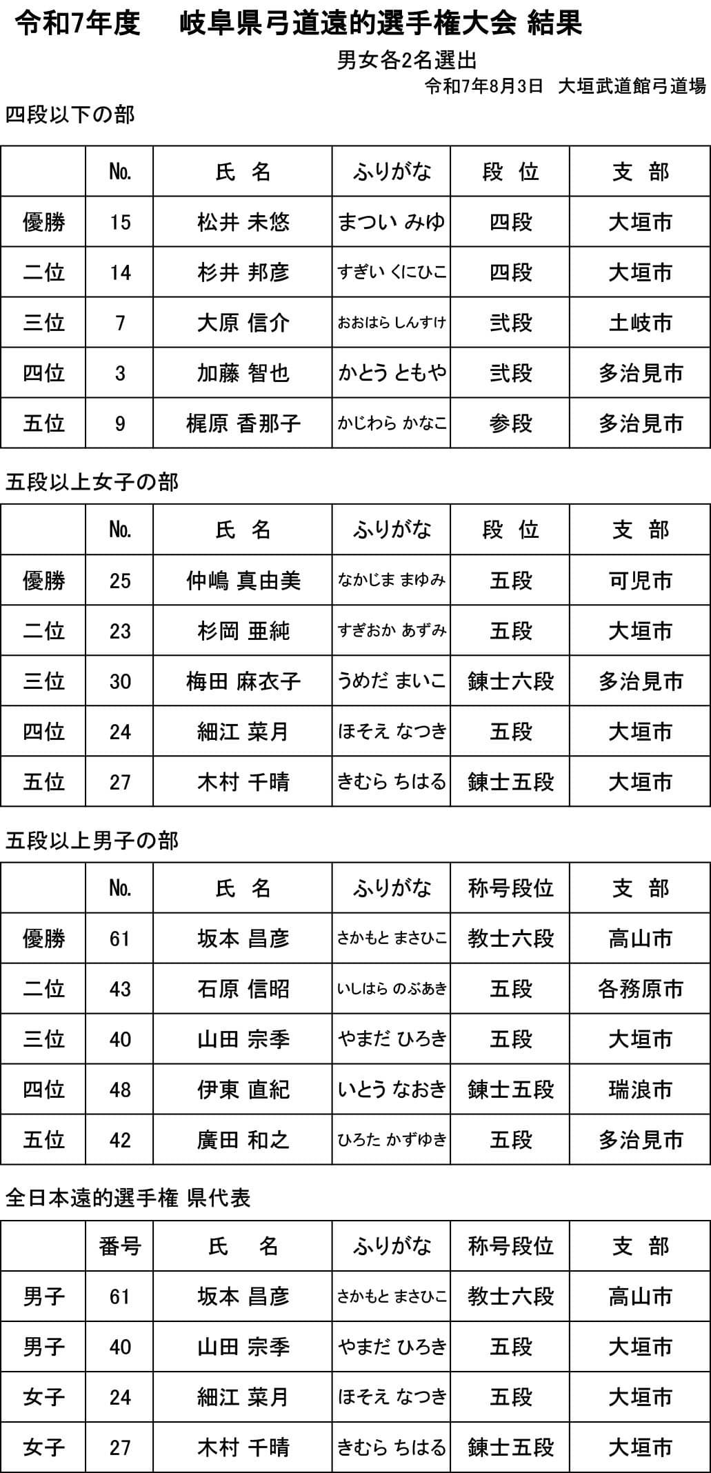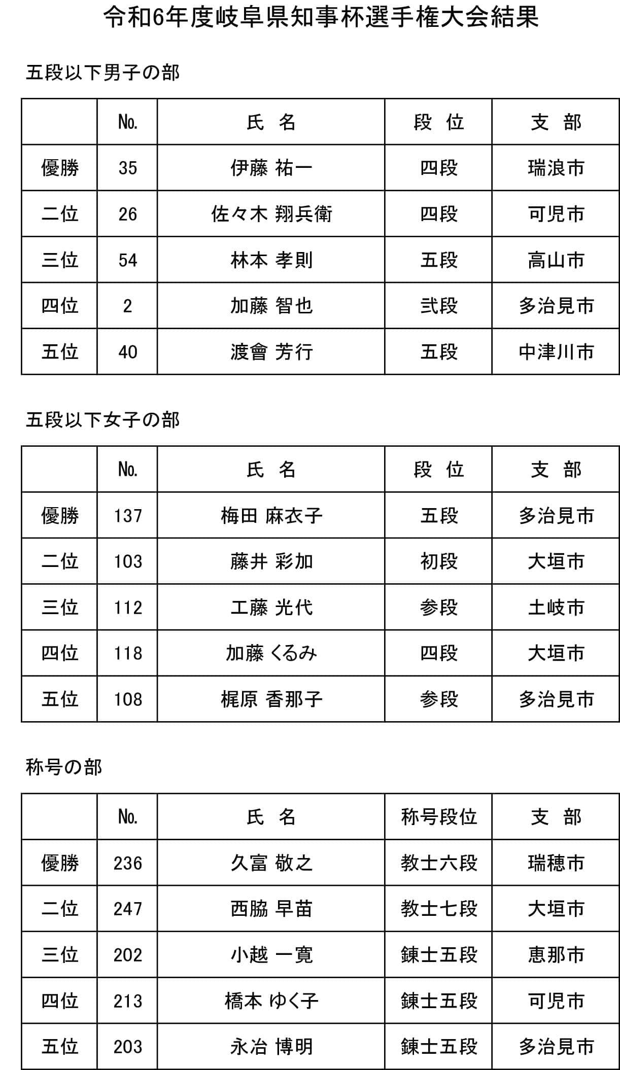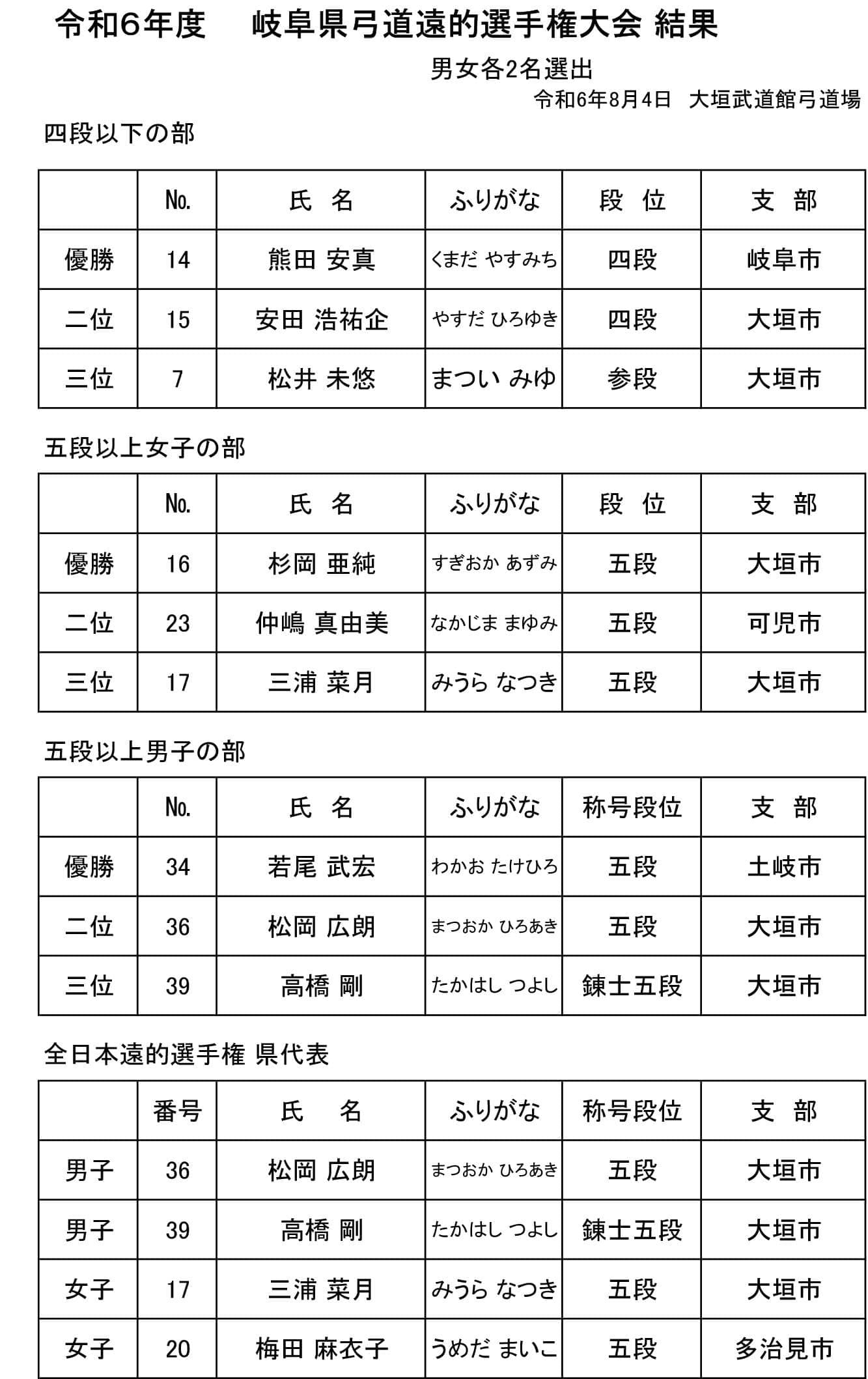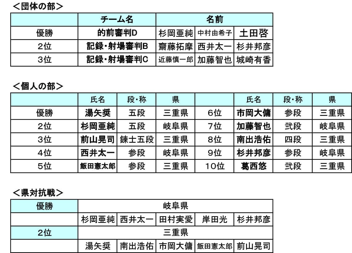 国体選手決定会/大垣市武道館 選考結果(敬称略)