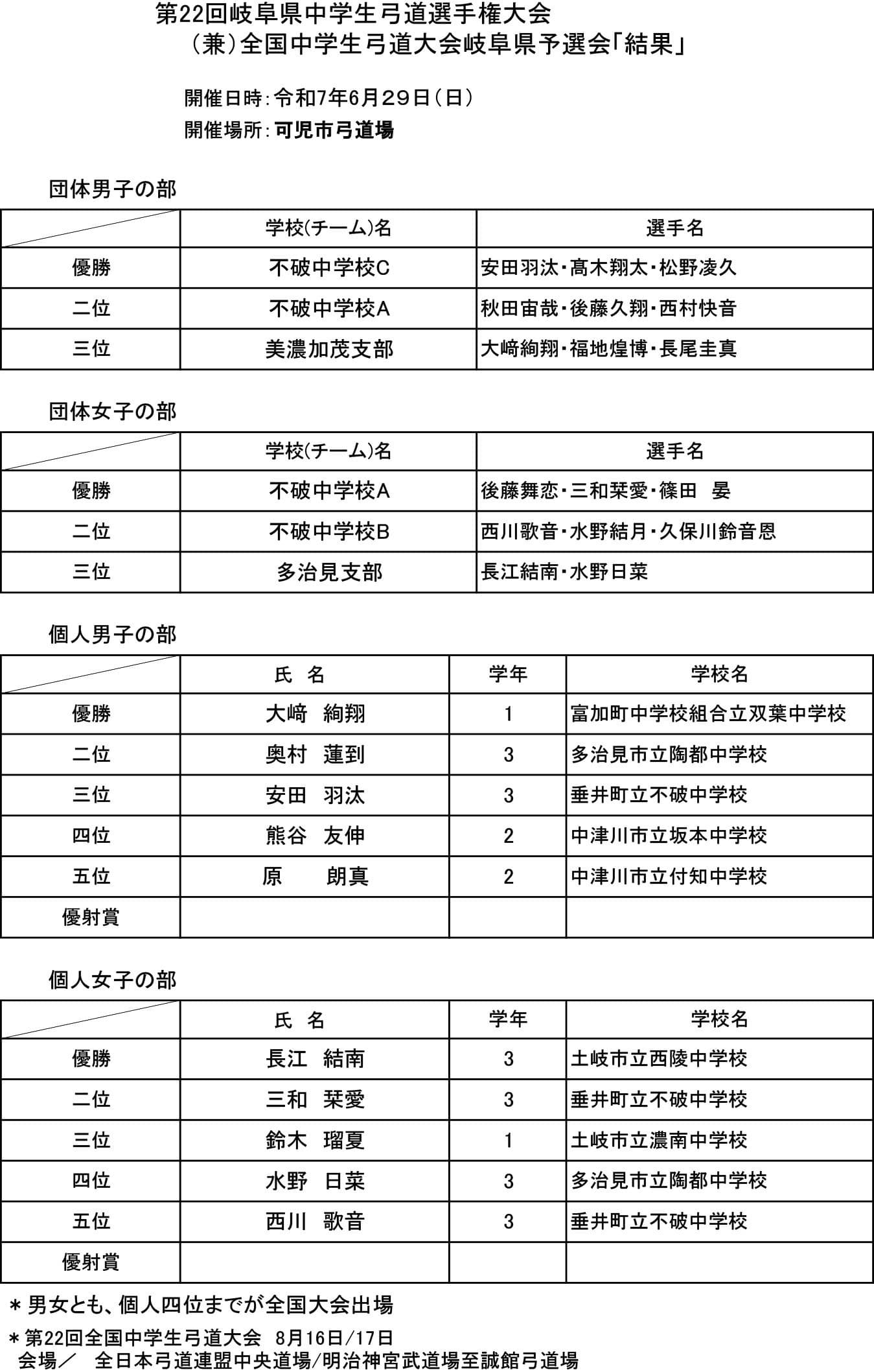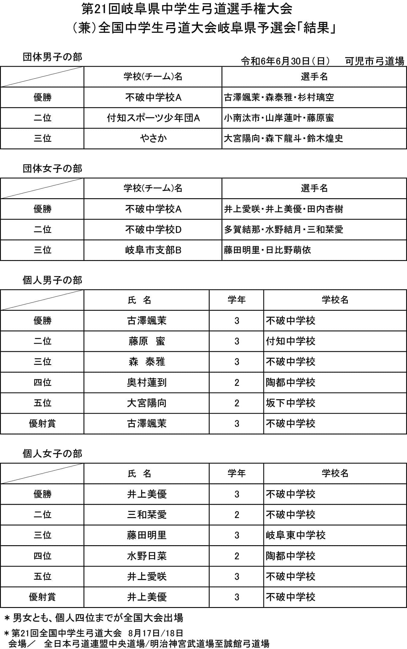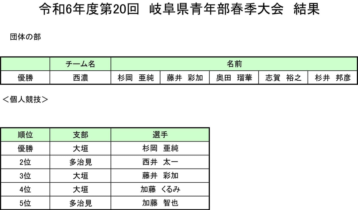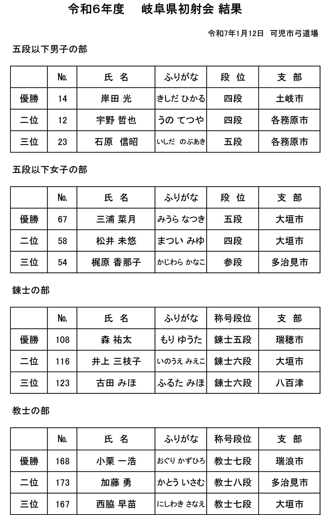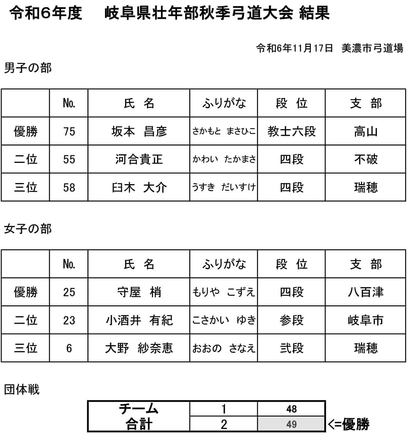 国体選手決定会/大垣市武道館 選考結果(敬称略)