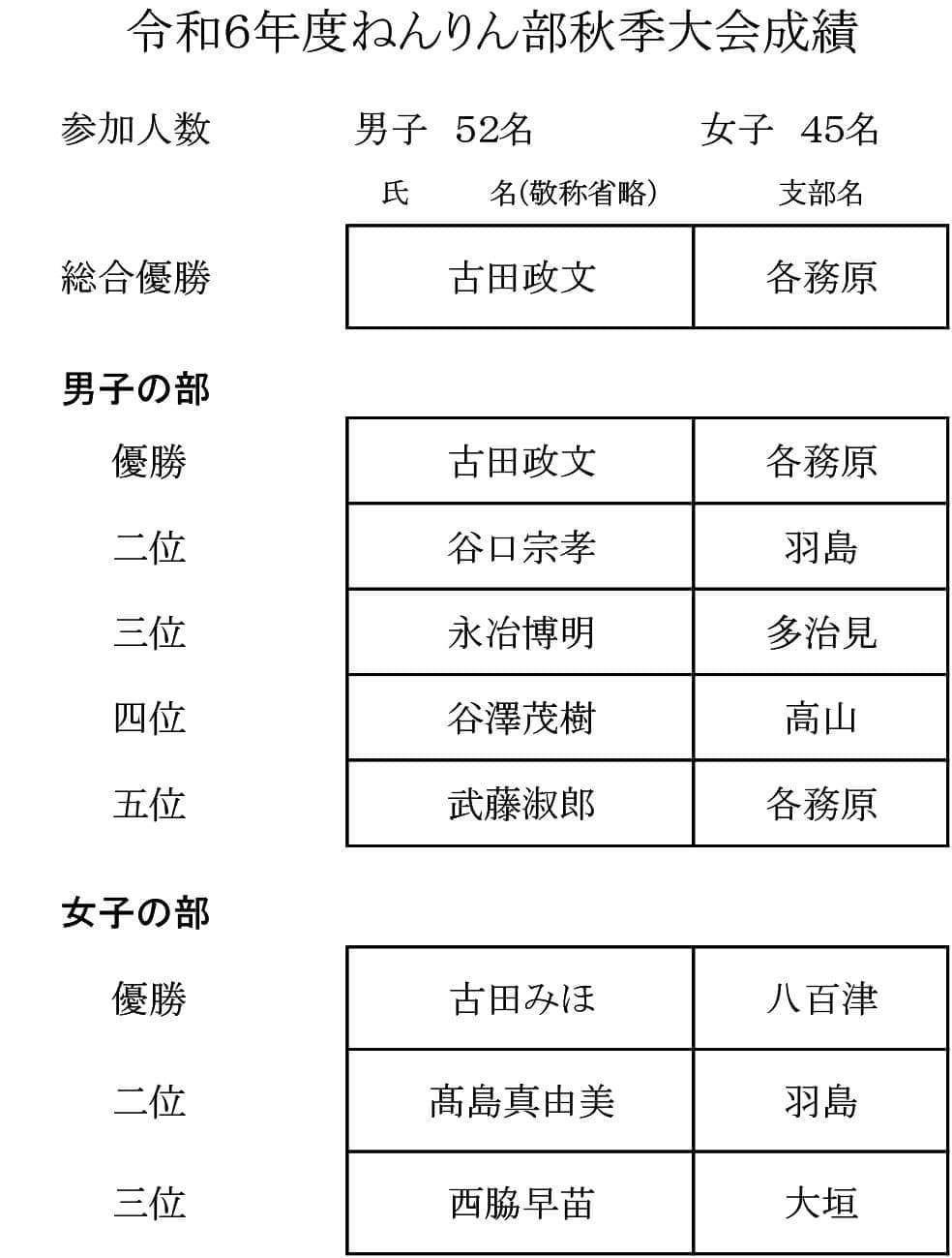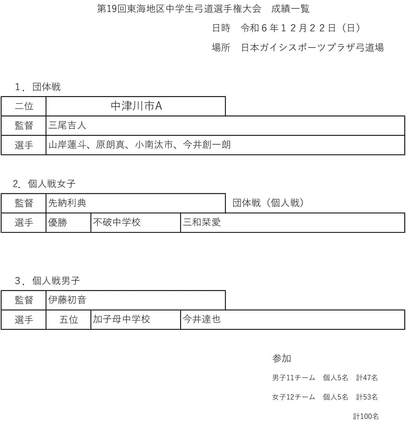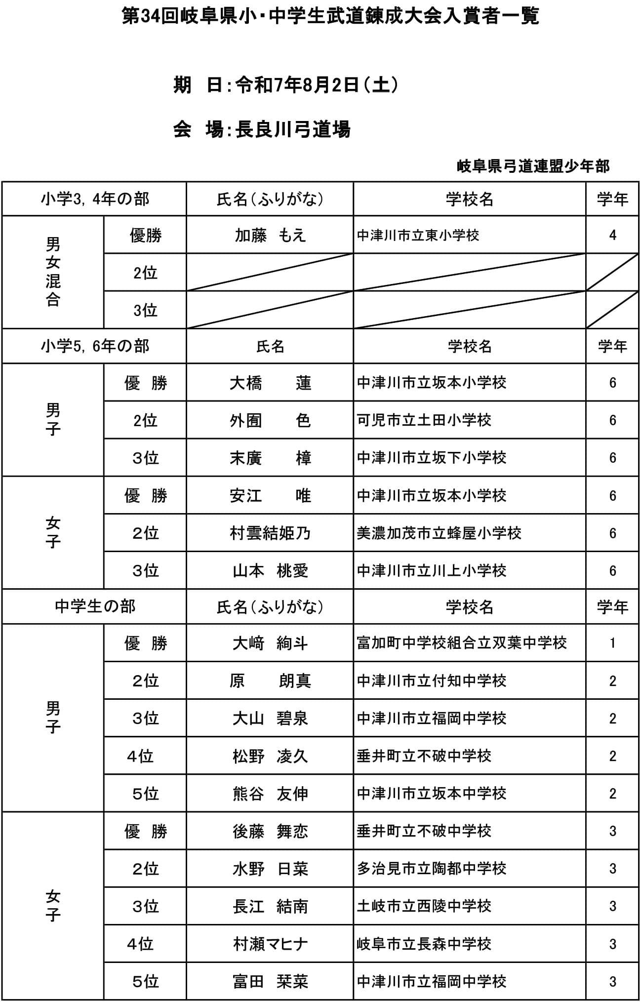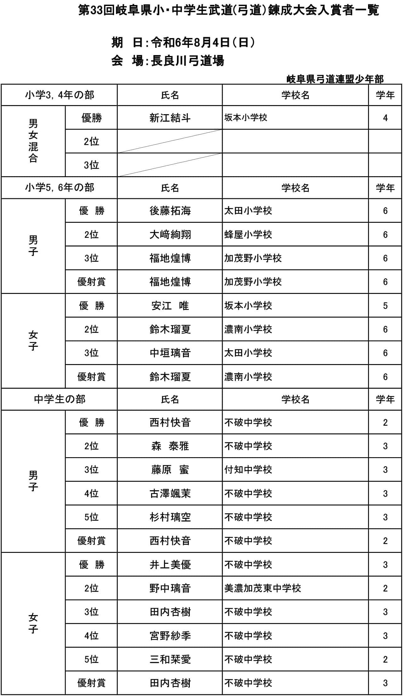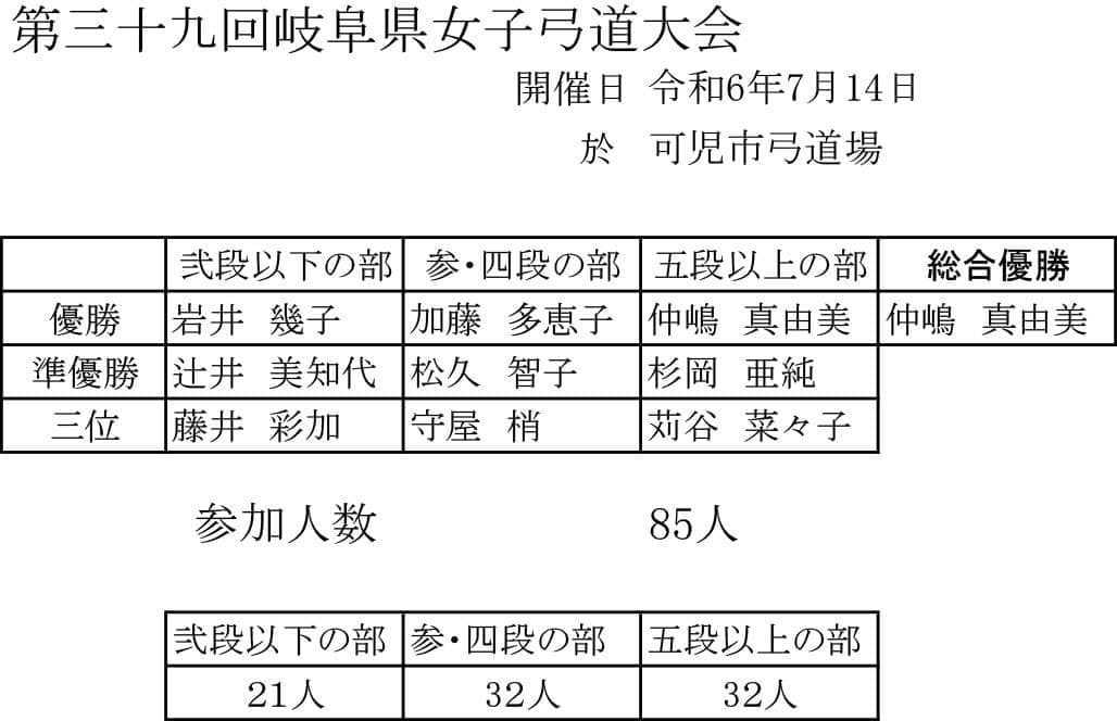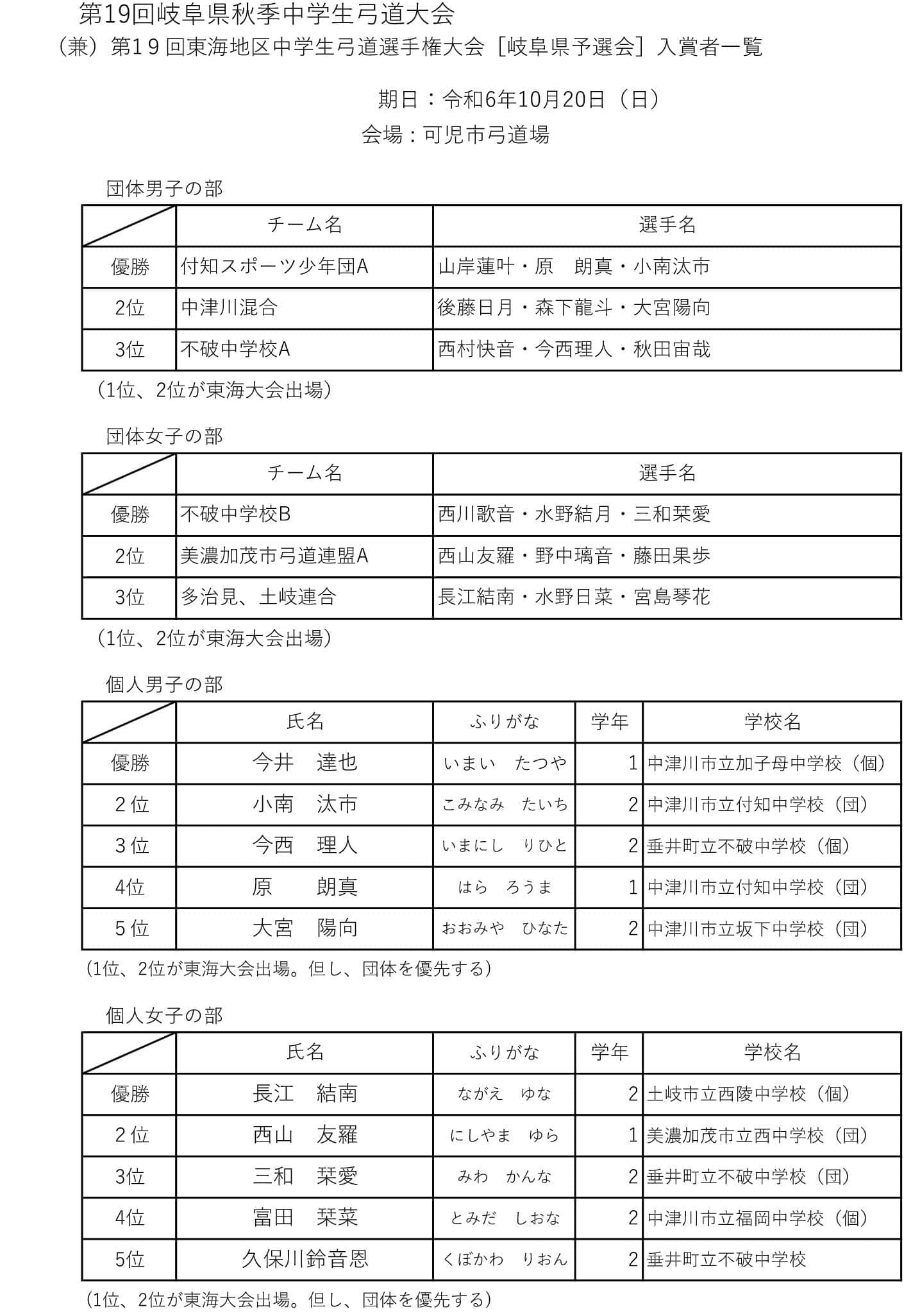 国体選手決定会/大垣市武道館 選考結果(敬称略)