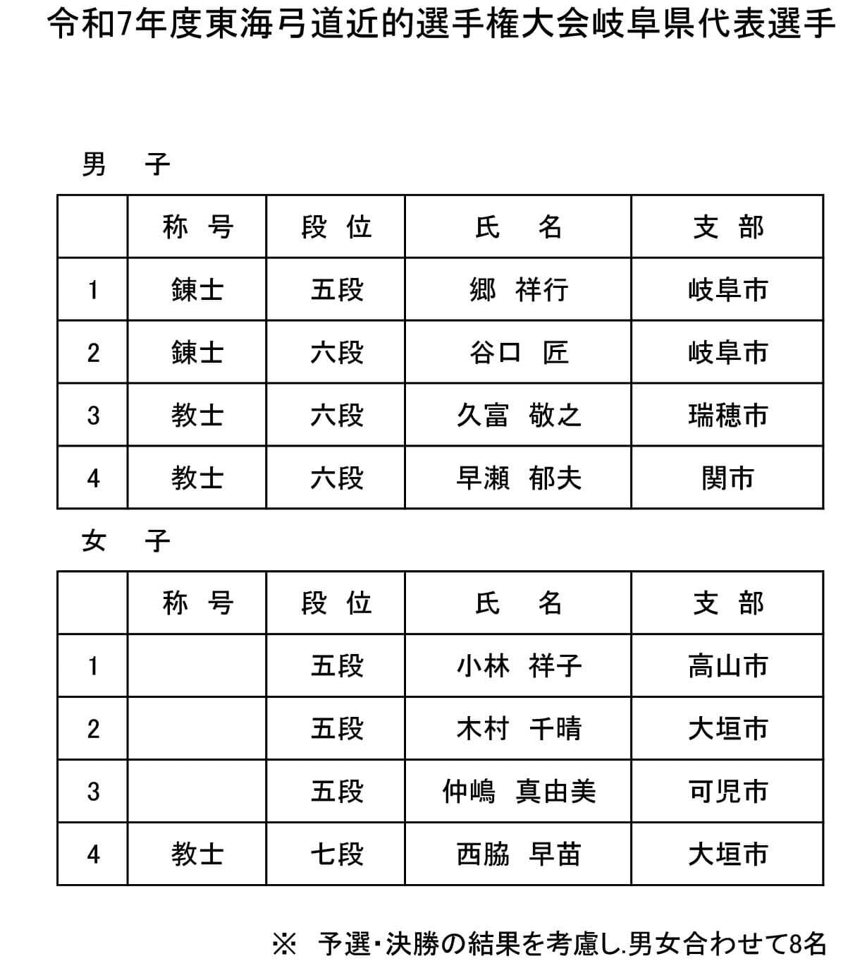 予選・決勝の結果を考慮し、男女それぞれ4名の岐阜県代表選手が決定しました。