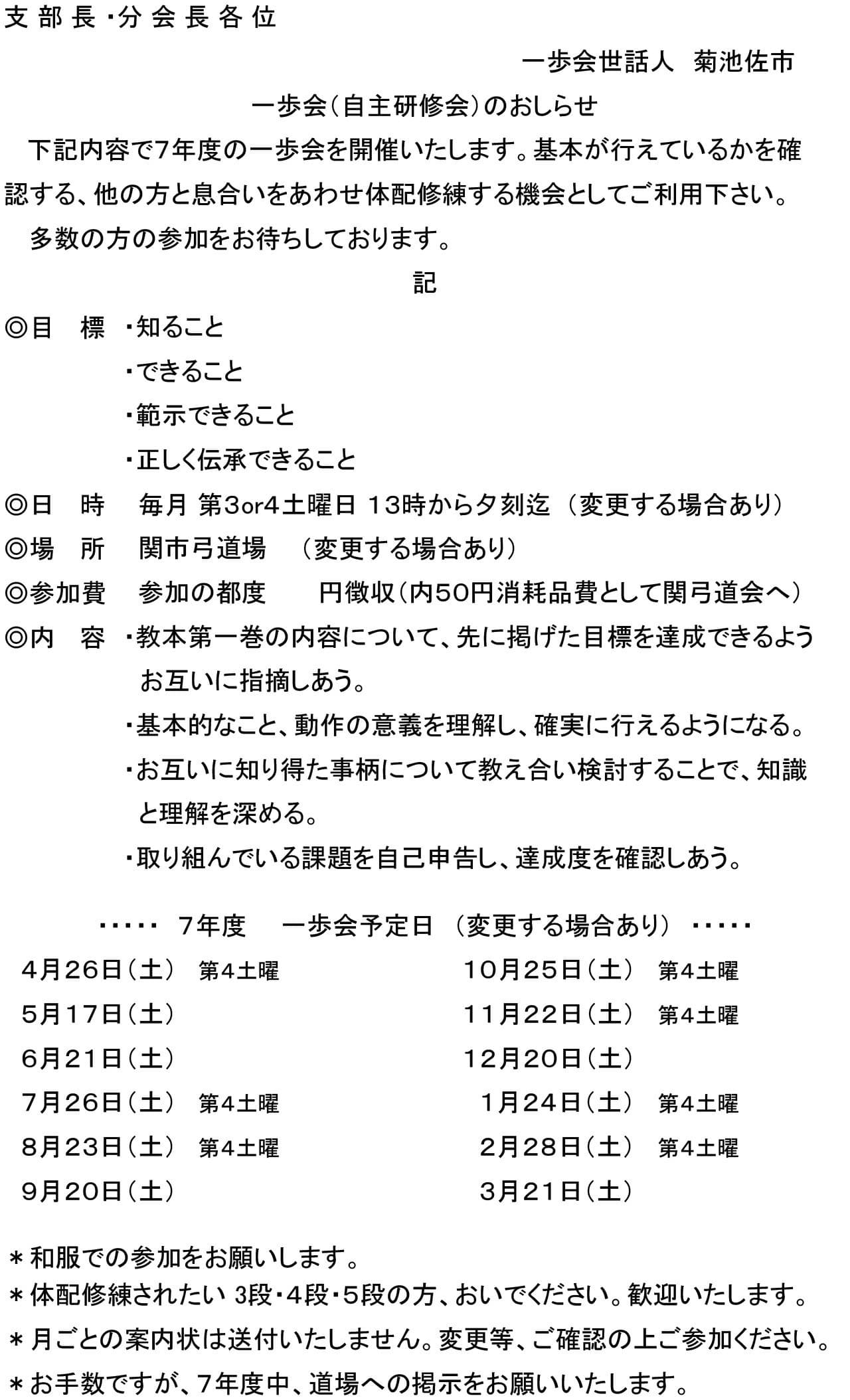 不破支部長 川瀬桂一郎さんまで連絡ください