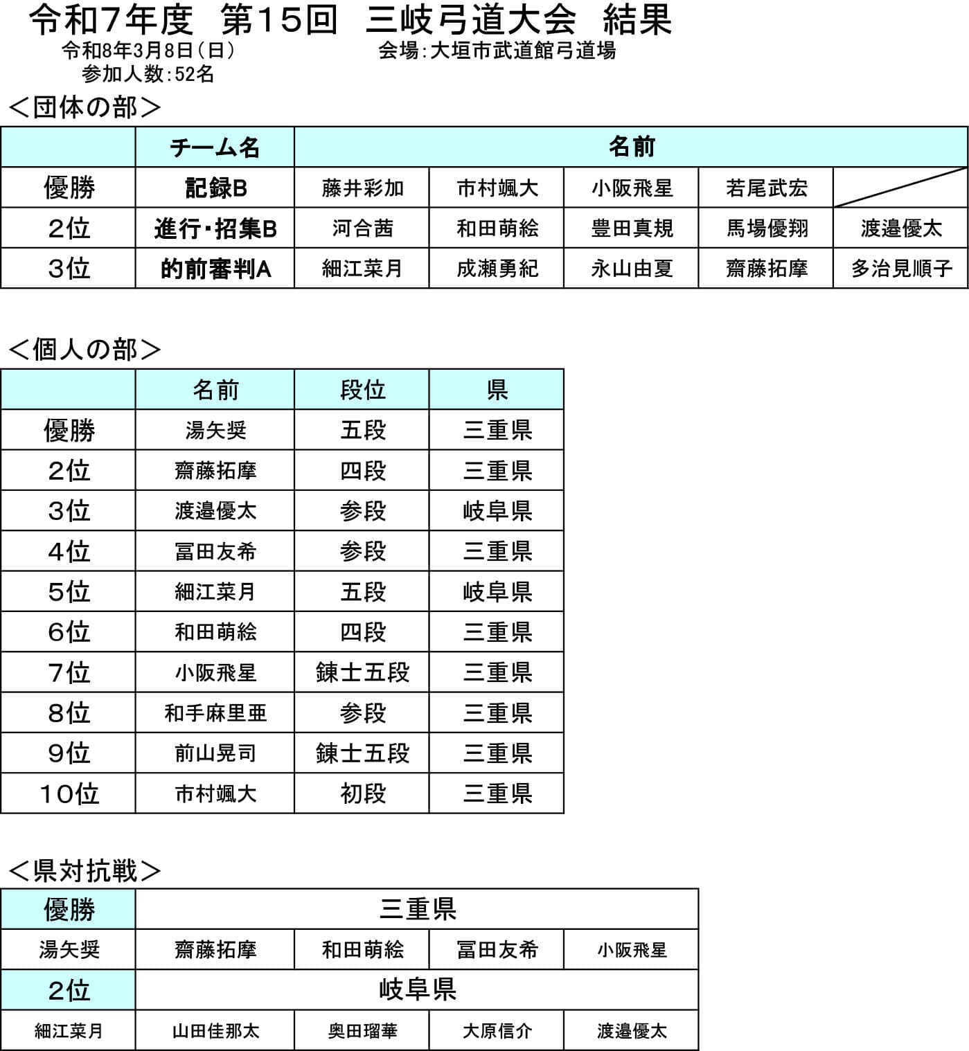 国体選手決定会/大垣市武道館 選考結果(敬称略)