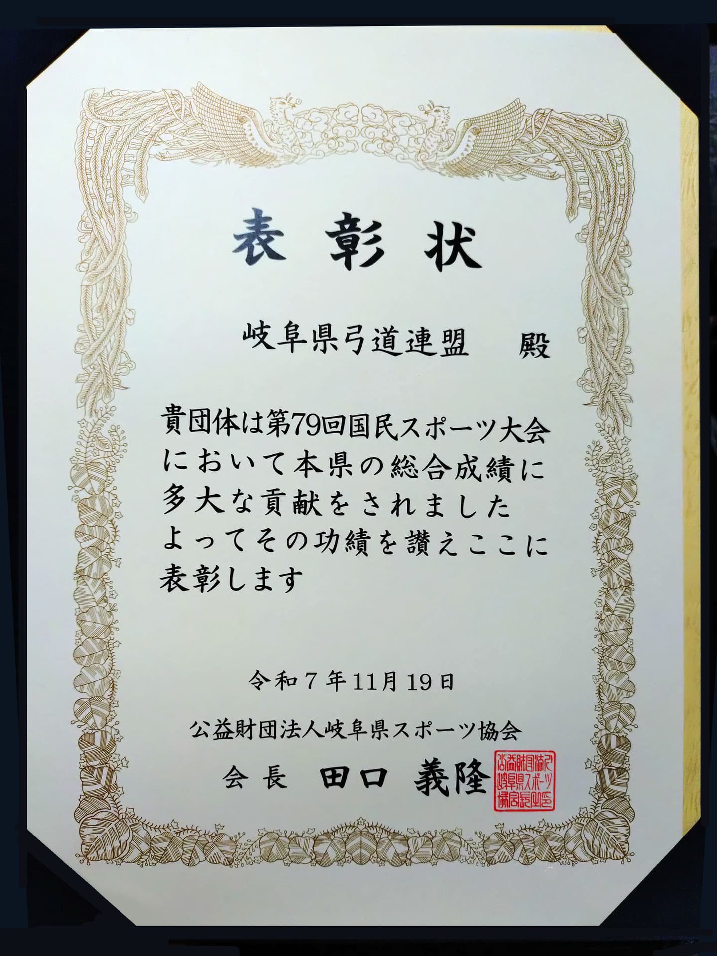 (公財)岐阜県スポーツ協会主催の第79回国民スポーツ大会賞表彰式報告 (2025/11/25)