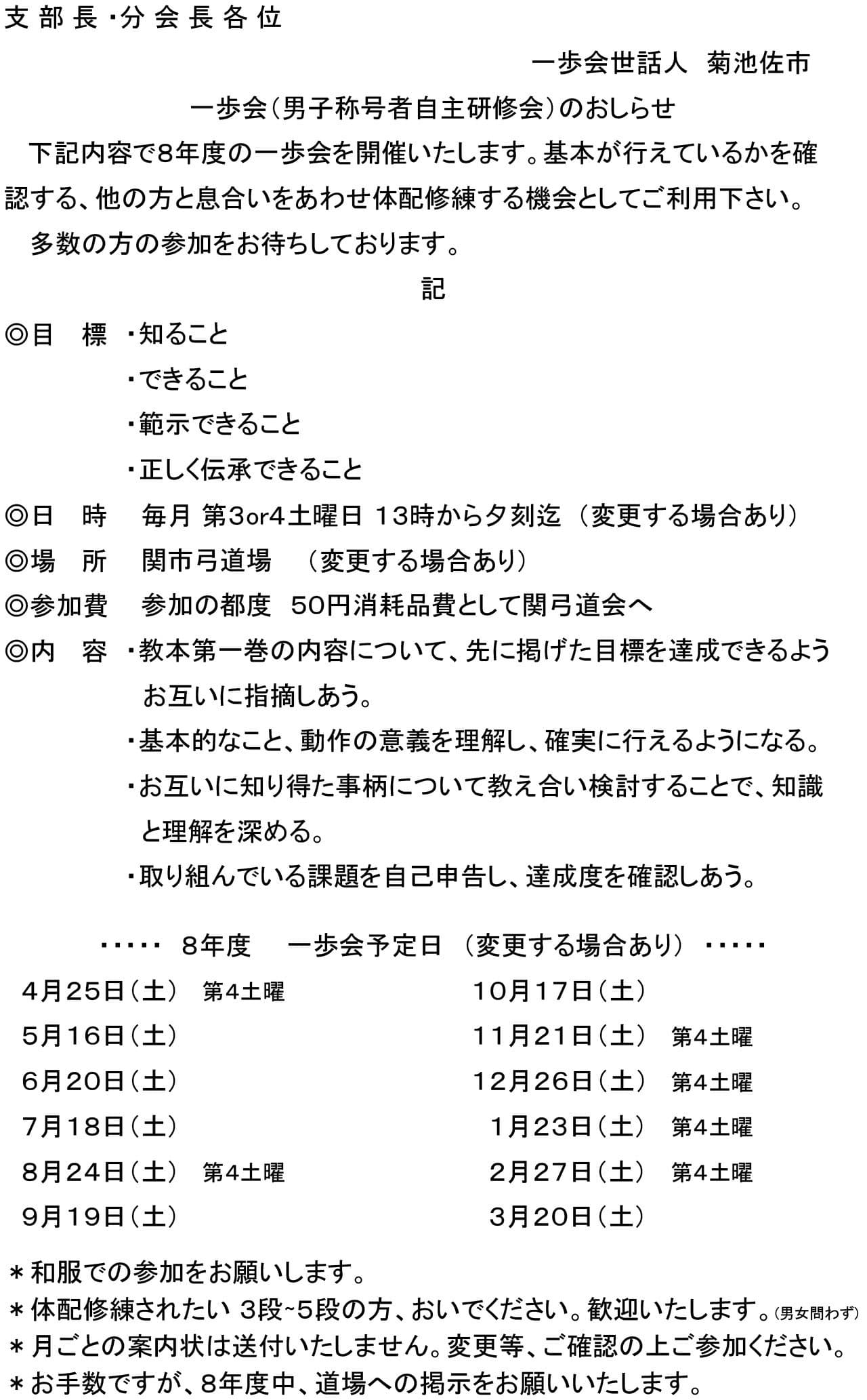 標題の件、5月4日の教士審査会において矢の紛失がございましたので、詳細を添付にてお知らせいたします。